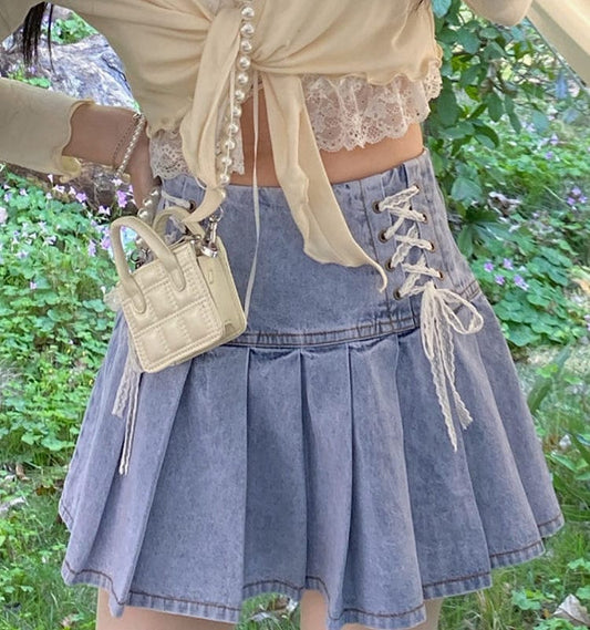 Flaunt those legs with this denim mini skirt! The pleats add a touch of femininity...