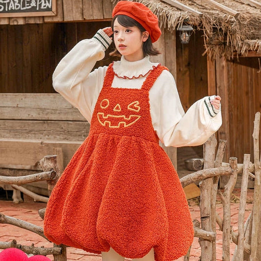 Elevate your festive wardrobe with the Kawaii Orange Halloween Funny Pumpkin Suspender Dress, a delightful...