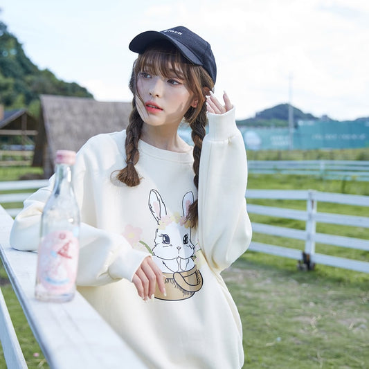 This Kawaii Sweet Cartoon Rabbit All-match Hoodie is girl sweater women's new autumn niche super...