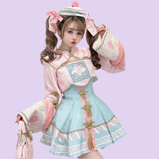 Step into a world of whimsical charm with our Cute Pink Cartoon Bunny Embroidered Lolita...