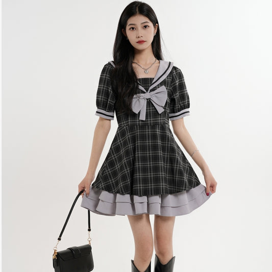 The Sweet Preppy Puff Sleeve Dress is the perfect way to embrace college style while...