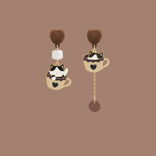 Be the trendsetter with these adorable Cute Coffee Cup Kitty Asymmetrical Earrings! A perfect accent...