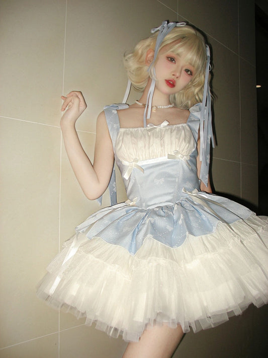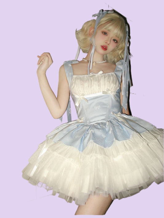 Introducing our enchanting ballet style blue and white small ribbon lolita dress. This exquisite piece...