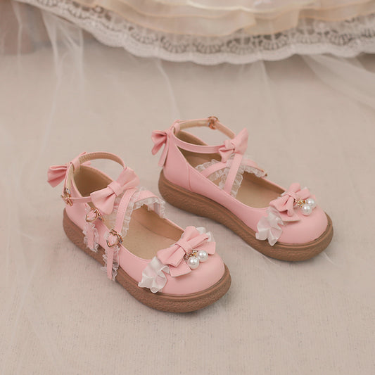 Step into a world of whimsical elegance with our Japanese Pink Bow Flat Lolita Shoes....
