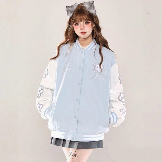 Discover the American Retro style puppy embroidered collar jacket! Perfect for a relaxed autumn look,...