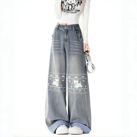 Discover our Women's Blue Puppy Print Straight Leg Jeans! Adorably crafted for spring, these jeans...