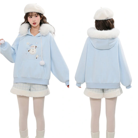 Sweet style cartoon blue snowman hoodie! Keep warm this autumn and winter with a cute...
