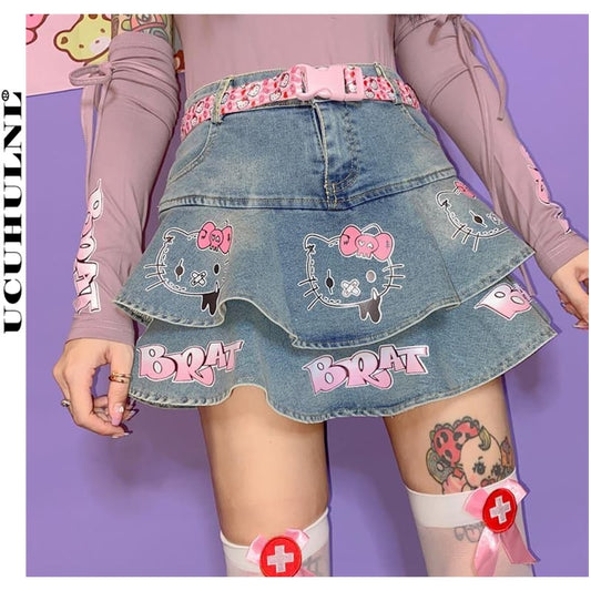 This Lolita denim mini pleated skirt is the perfect addition to any fashion-savvy woman's wardrobe....
