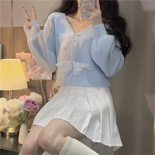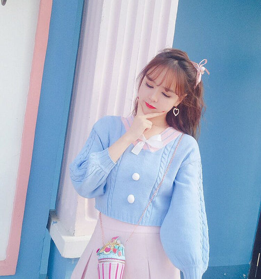 This Korean Style Puff Sleeved Bowknot Cardigan is the perfect addition to your autumn wardrobe....
