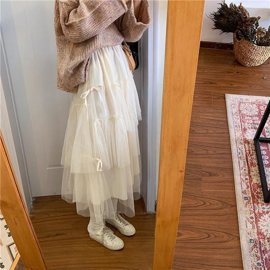 This Korean Style Midi Mesh Skirt is a must-have for any fashion-savvy woman. It's perfect...