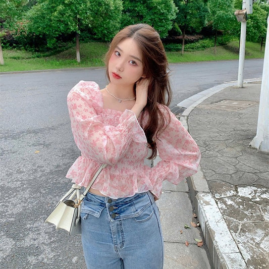 These Korean style puff sleeved floral blouses are perfect for any woman who wants to...