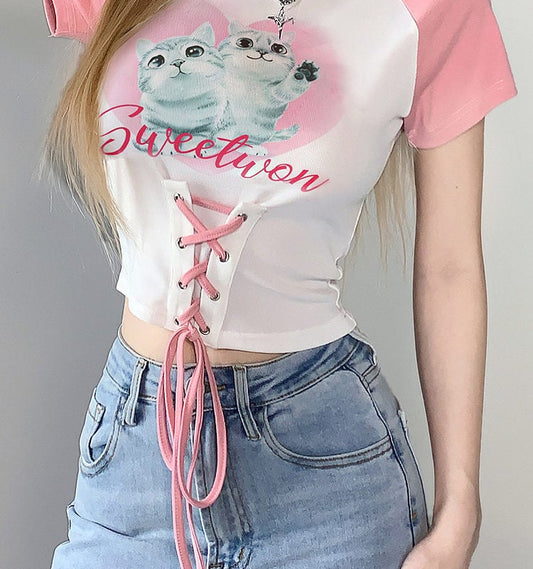 This Cute Double Color Short Sweater is a Korean Style Contrast Color Stitching Long-sleeved T-shirt...