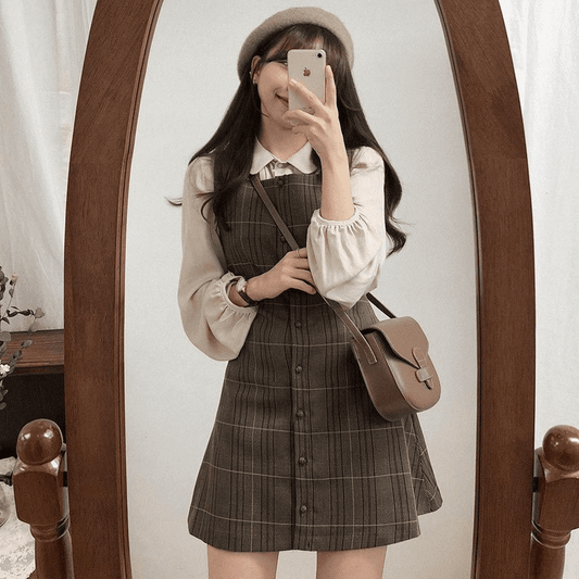 This Kawaii Sweet Plaid Pinafore Dress is perfect for a girl who wants to feel...