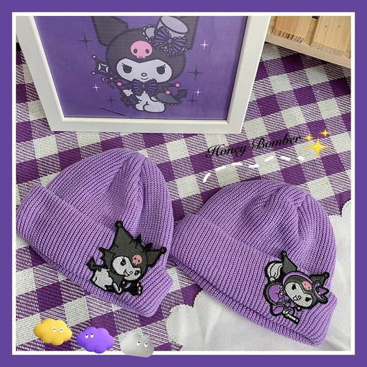 Introducing the Kawaii Cute Kuromi Woolen Hat! This adorable hat is perfect for keeping warm...