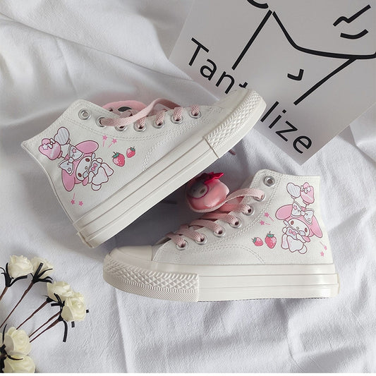 These Kawaii Cinnamoroll High-Top Canvas Shoes are the perfect winter fashion statement for young girls....