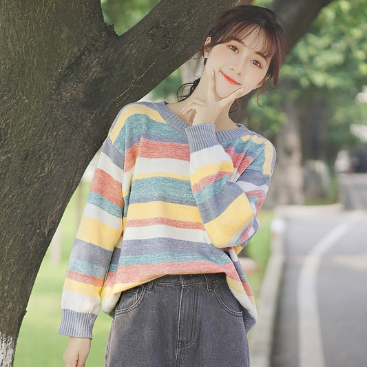 Introducing the Korean Fashion Girl All-match Striped Sweater – the perfect sweater for stylish, fashion-forward...