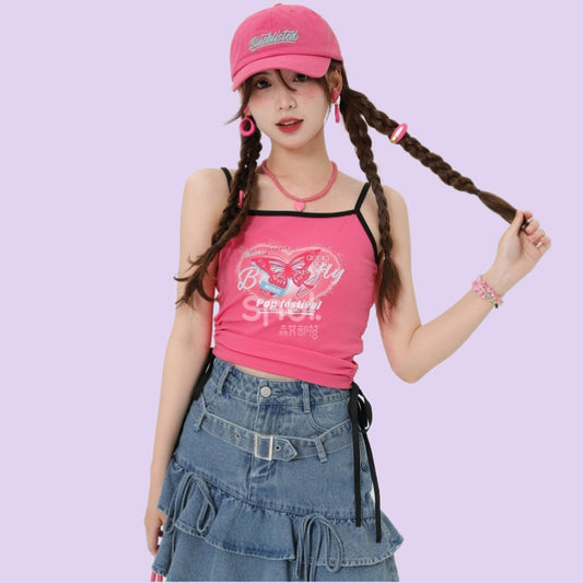 Welcome to a blast from the past with our Summer Y2K style Butterfly Print Tank...
