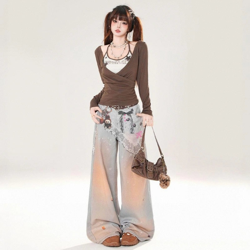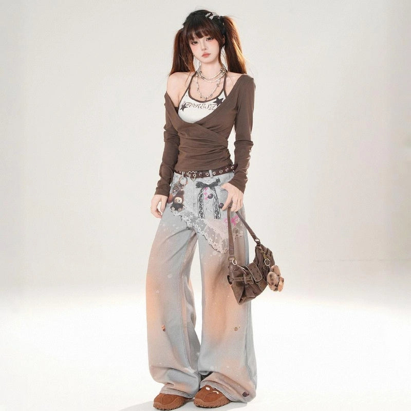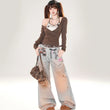 American Blue Gradient Wide-Leg Jeans: Embrace comfort with our loose-fitting, slimming styles. Perfect for autumn, available in sizes S to XL!