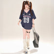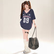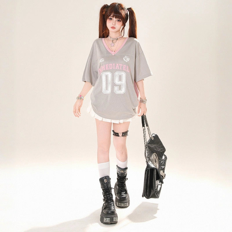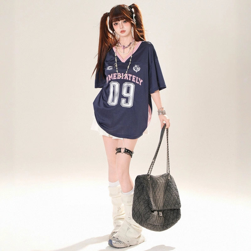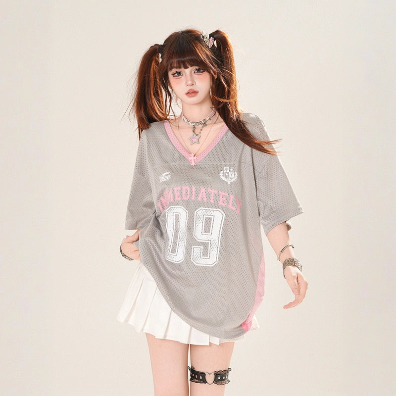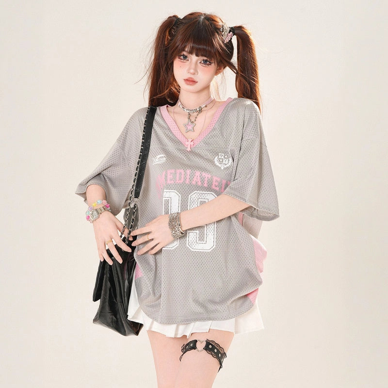 Style: Street Clothing style: Loose Sleeve type: Regular Material composition: Polyethylene terephthalate (polyester) 95% Other 5% Applicable season: Summer Sleeve length: Short sleeve Collar type: V-neck Size: S, M, L Color: Dark blue, grayPackage Includes: