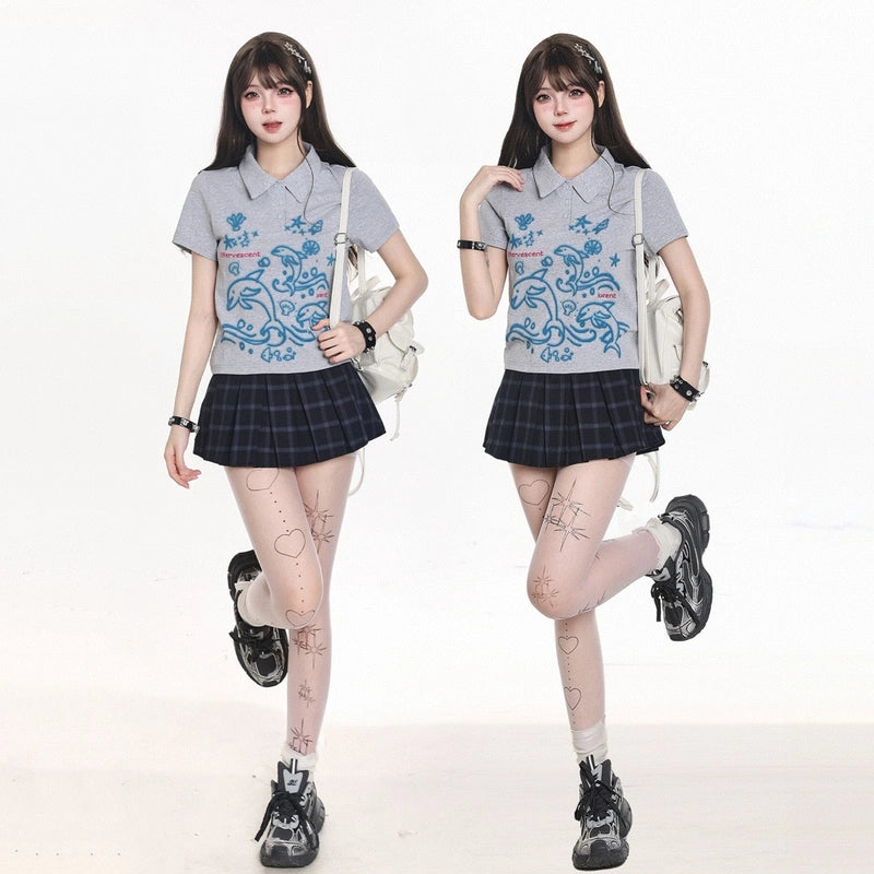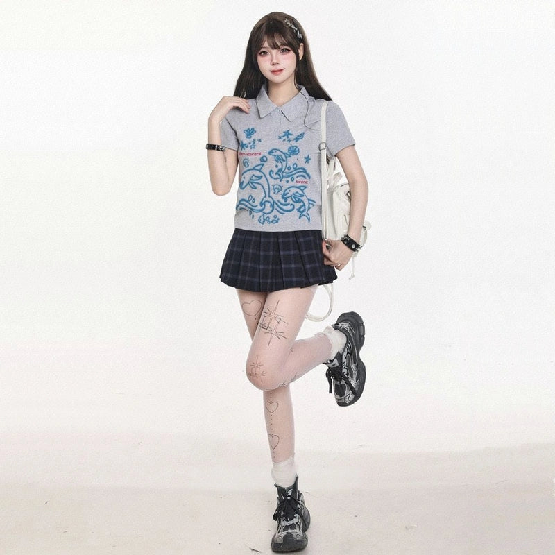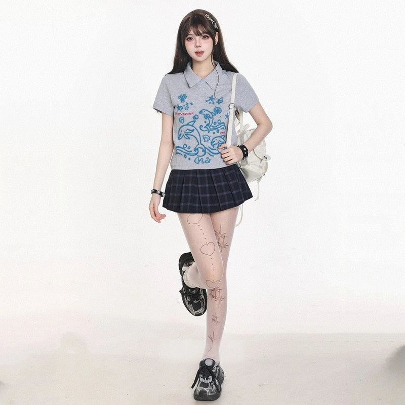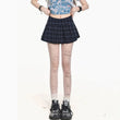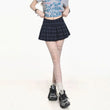 American Retro Style Blue Plaid JK Skirt: Embrace summer with this high-waist, pleated A-line skirt. Perfect for college vibes and all-match outfits!