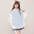 Collar Design: Turn-down collar Platform: Buttons Sleeve Length: Long sleeve Style Details: Embroidery Fit: Loose fit Sleeve Type: Regular Thickness: Regular Length: Regular Size: S, M, L Colors: Blue, PinkPackage Includes: