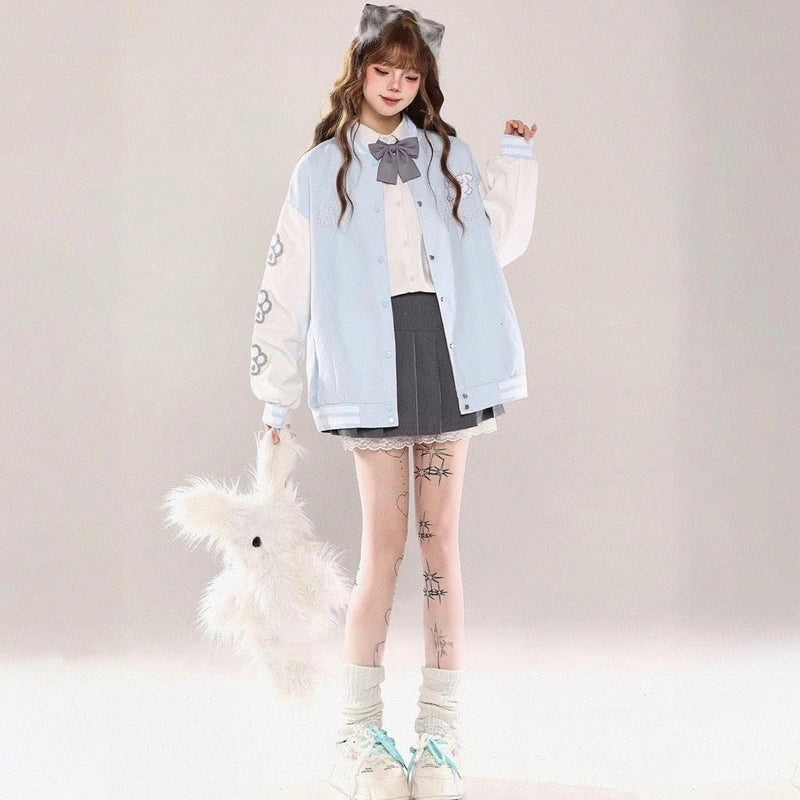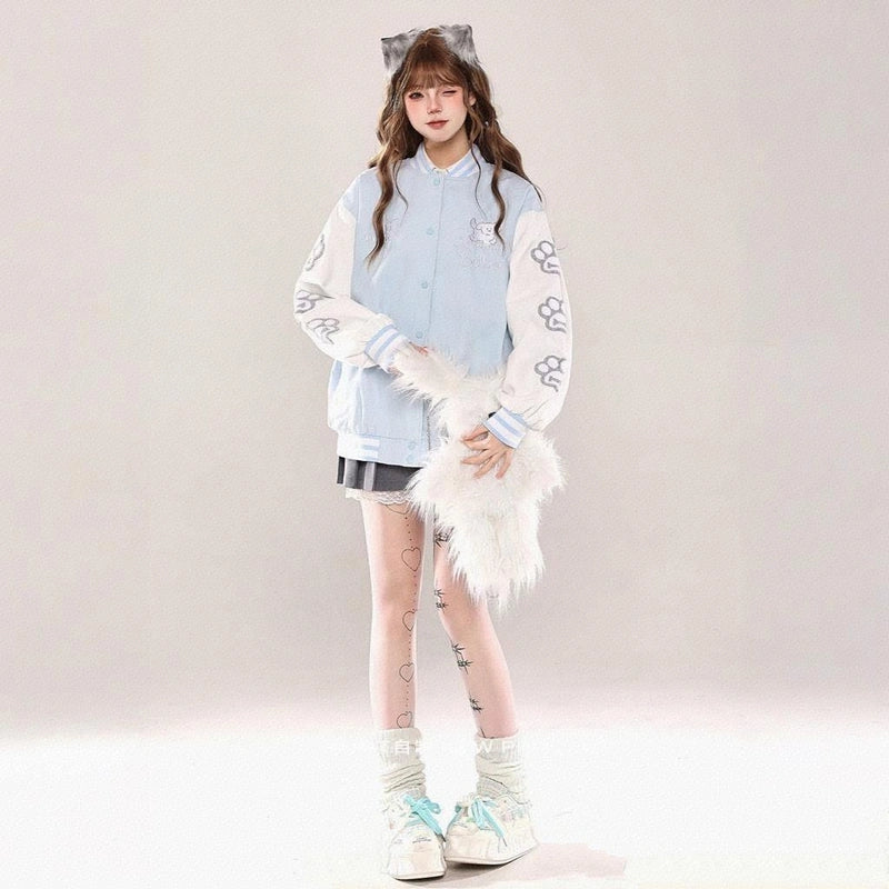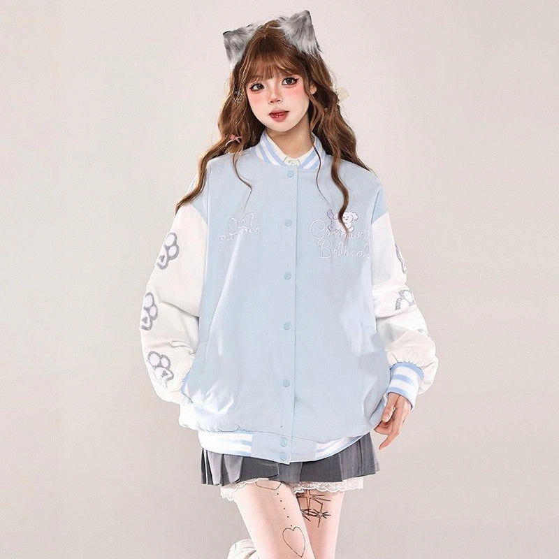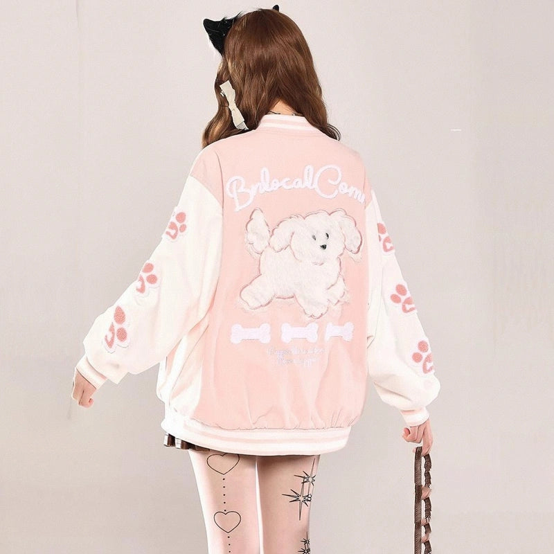 Discover the American Retro style puppy embroidered collar jacket! Perfect for a relaxed autumn look, featuring long sleeves and eye-catching embroidery.