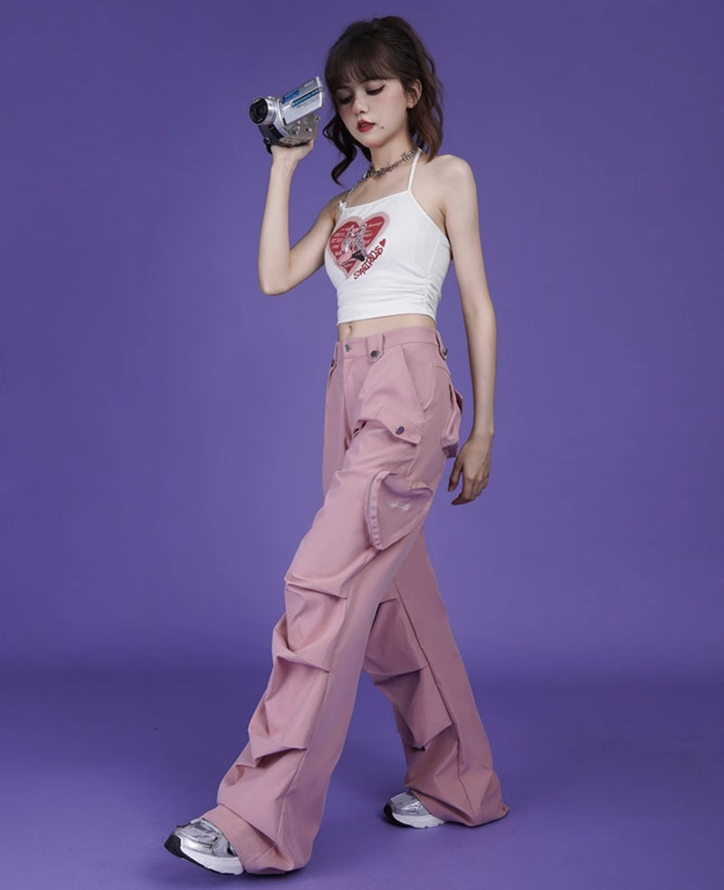 Size: S M L XL 2XL style: street Waist height: natural waist Popular elements: pockets Color: black pink khaki Pants type: tooling Pants material composition: polyester fiber 100%Package includes: