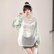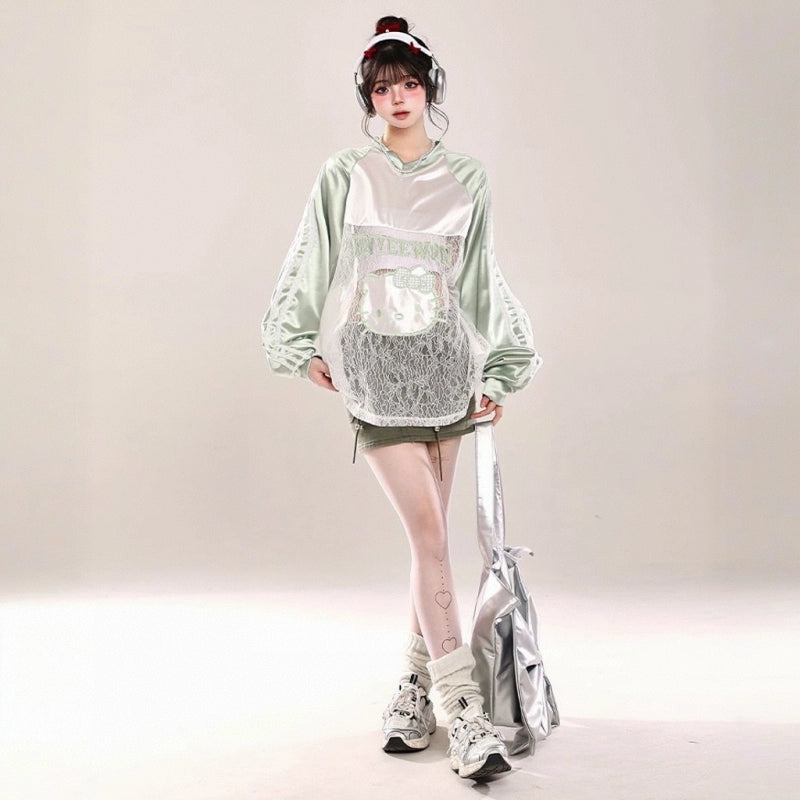 Style: American, Korean Clothing style: Loose Fabric: Cotton Sleeve type: Regular Applicable season: Summer Sleeve length: Long sleeve Collar type: Round collar Length: Regular Pattern: Cartoon animation Size: S, M, L, XL Color: Black, Green, PinkPackage Includes: