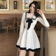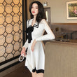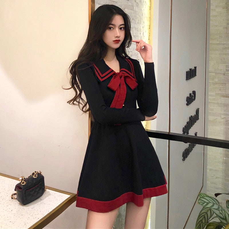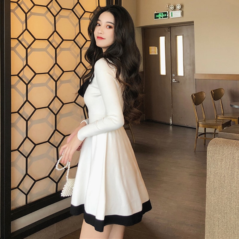 Looking for a versatile dress that you can wear to the office and then out to dinner? Look no further than this knitted dress with a bow tie neck. The high waistline is figure-flattering, while the long sleeves make it perfect for cooler days. Whether you're dressing up or dressing down, this little black dress is sure to impress.