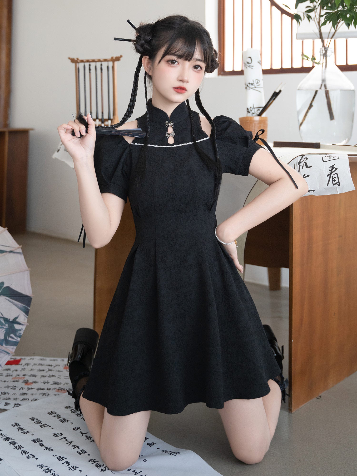 Chinese Style Summer Puff Sleeve Dress