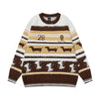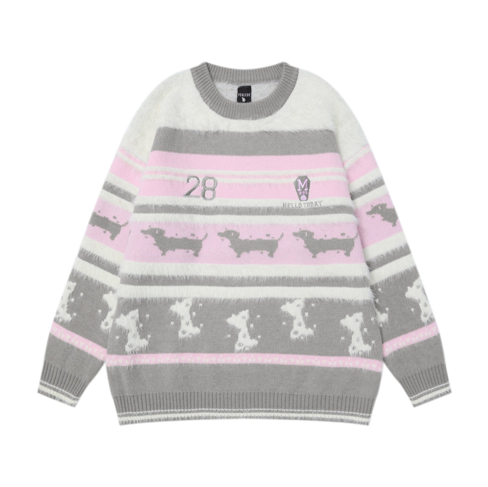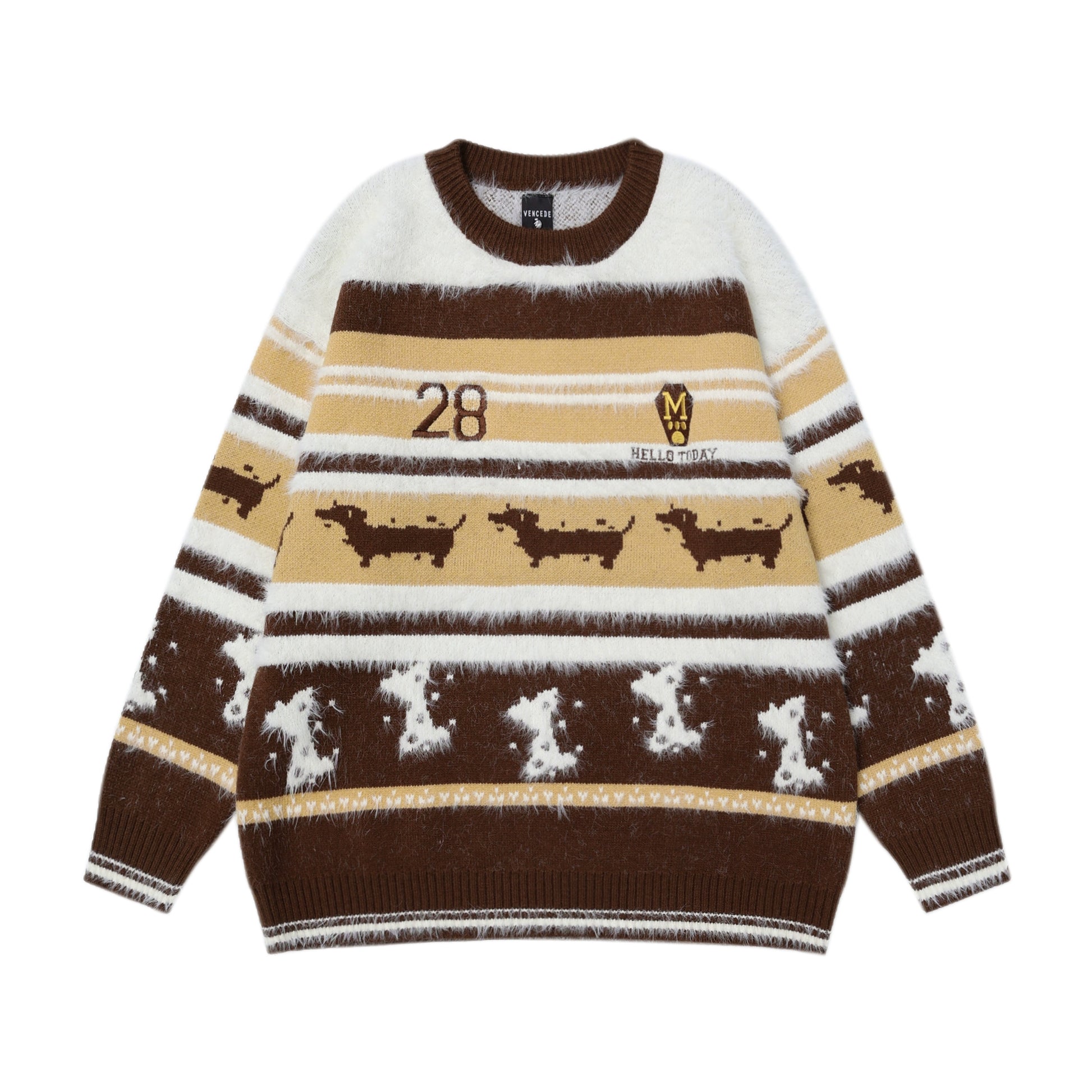 Retro Christmas Sweater: Embrace festive charm with our round neck, loose-fit knit. Perfect for cool seasons in pink or camel. Sizes S-L available.