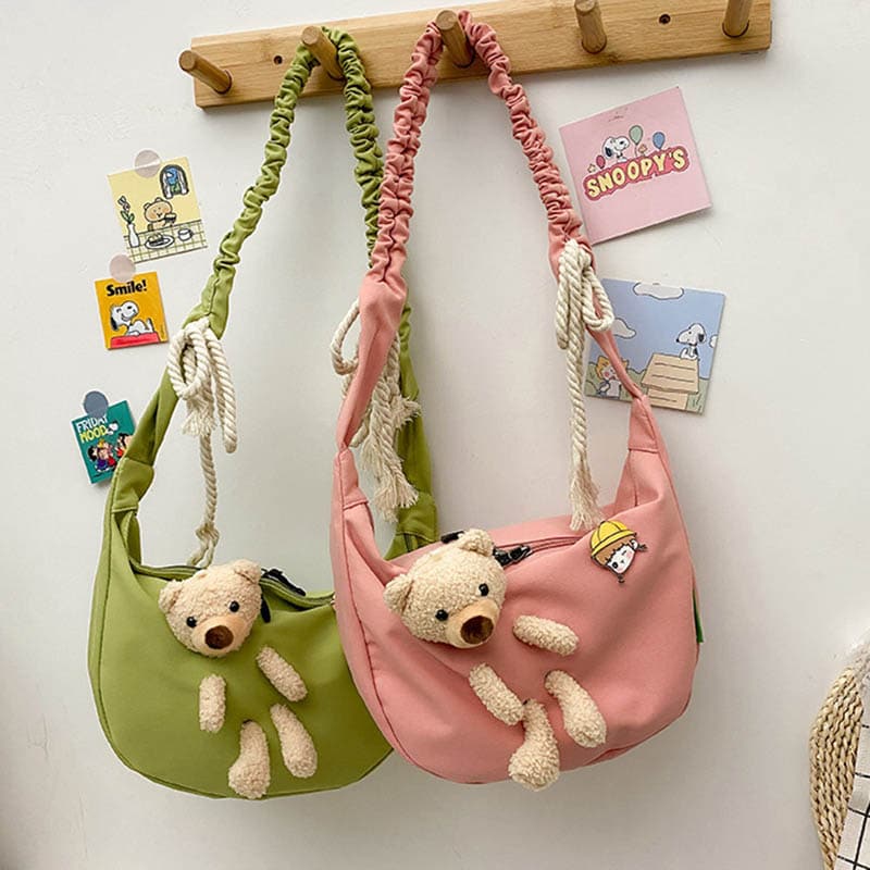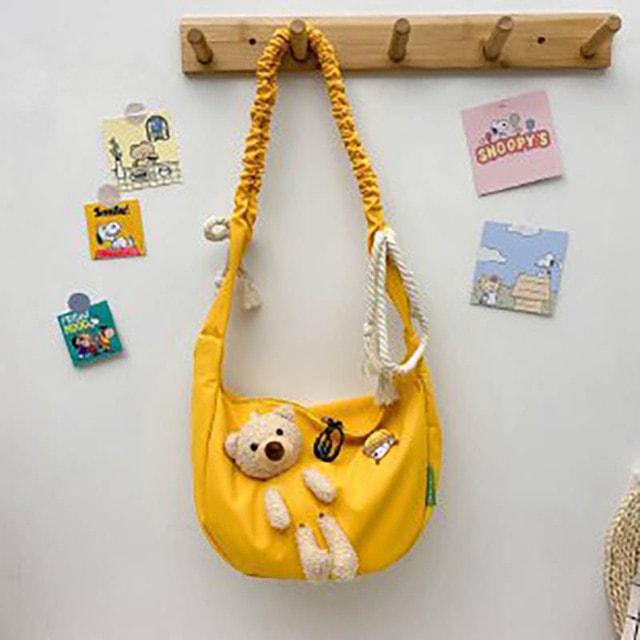 This adorable little Bear Canvas Crossbody Bag is perfect for any girl on the go! The small size is perfect for carrying your phone, keys, and other essentials, while the shoulder strap ensures that you're hands-free. The big, colorful design is perfect for summer, and will make you stand out from the crowd.