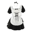 Transform into a French maid in seconds with this Cute Black White Maid Uniform Dress Suit. The neck ring tutu skirt girdle ribbon apron will ensure you look your best and make all the right impressions. Whether you're hosting a party or going out, this costume will have you feeling ready to take on the night in style. The glamorous ensemble is perfect for those looking to add some fun spice to their wardrobe while also making an unforgettable statement.