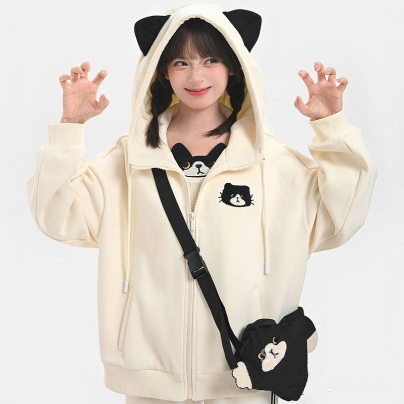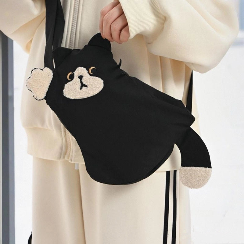 Carry playful charm with the Cute Cartoon Cat Embroidered Crossbody Bag. Featuring a youthful, girly college-style design, this Kawaii bag showcases an adorable kitten towel embroidery patch. With a secure zipper closure and single strap, it’s a stylish and practical choice for autumn. Available in classic Black for easy pairing.