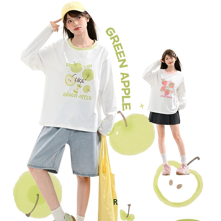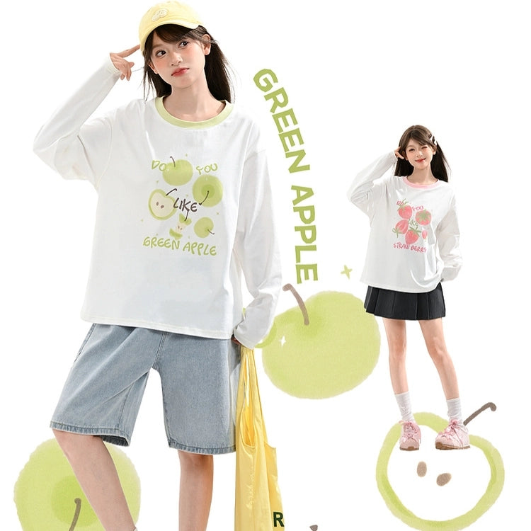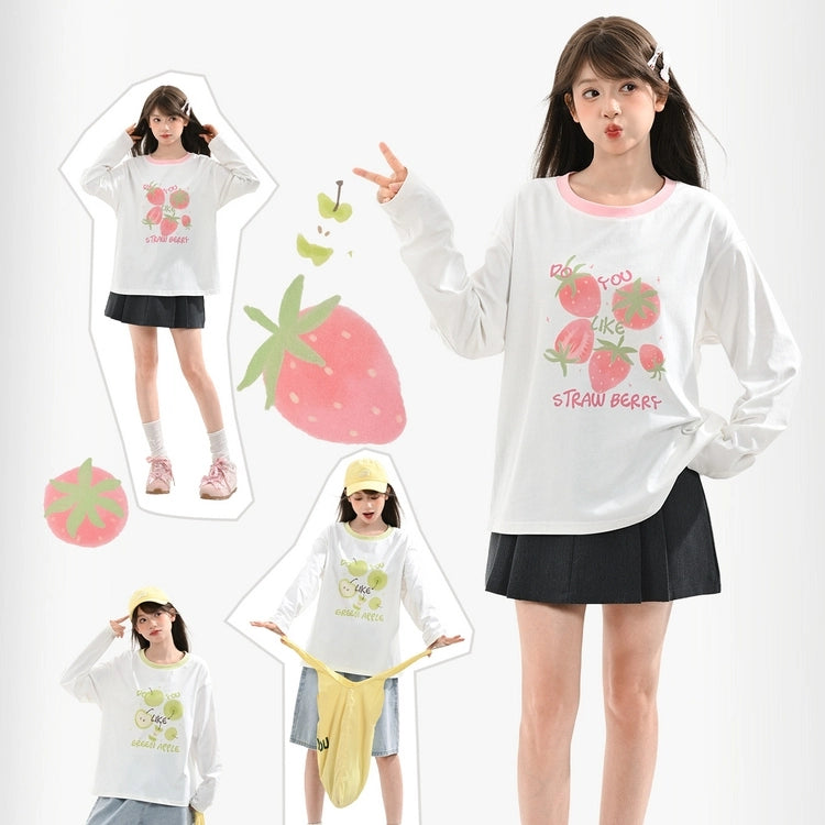 Cute Cartoon Fruit Print Long-Sleeved T-Shirt