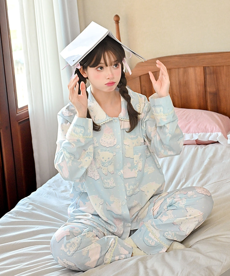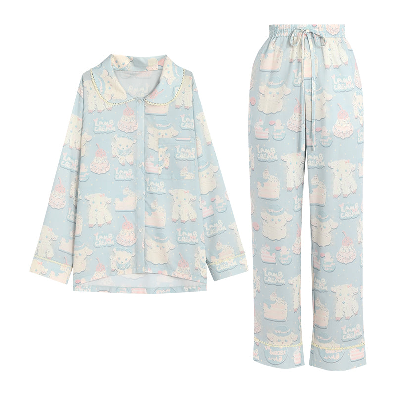 Cute Cartoon Lamb Print Pajama Set