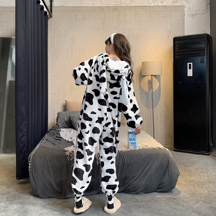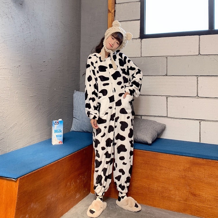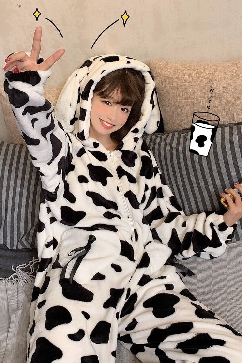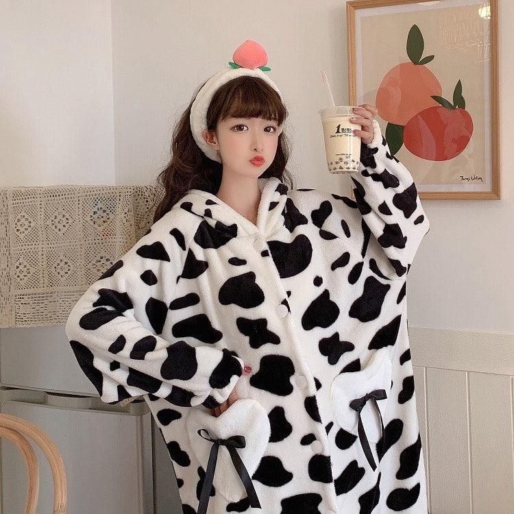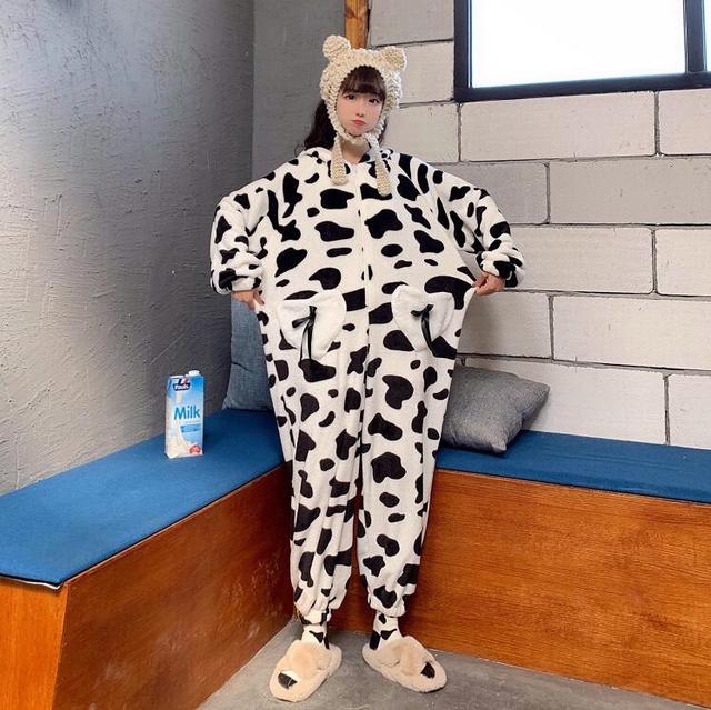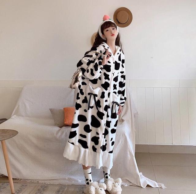Looking for a way to show your love of cows while lounging around at home? These cow-printed coral velvet pajamas are perfect! Made from soft and cozy coral velvet fabric, these pajamas will keep you warm all winter long. The fun cow print is sure to make you smile, and the loose fit is comfortable and relaxing. The hooded nightgown also makes it easy to stay warm, and the siamese pajamas style is cute and unique.
