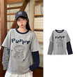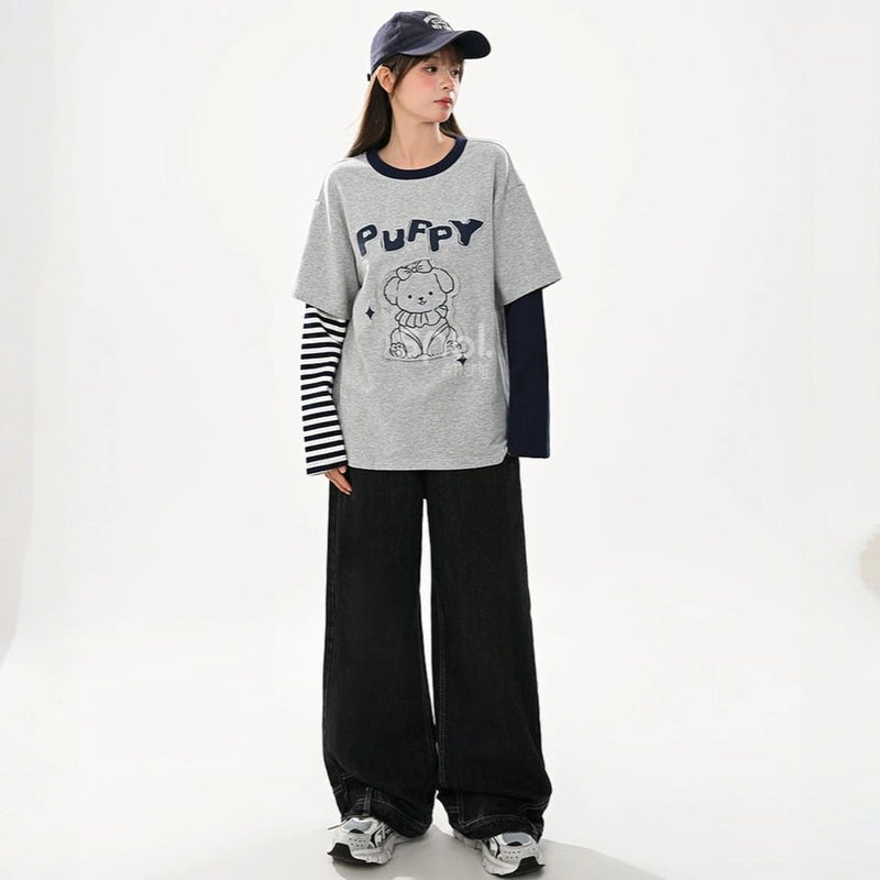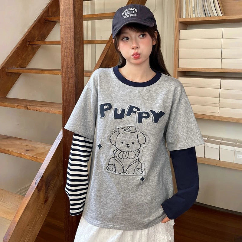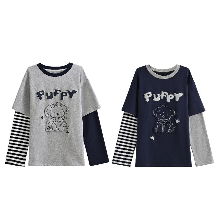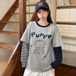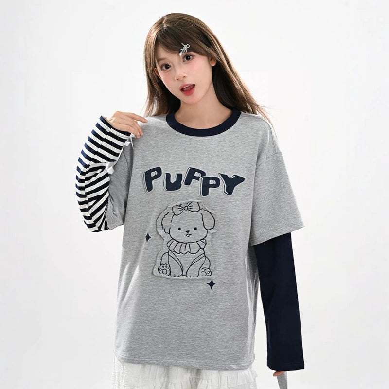 Cute girly style Puppy Patch Long-Sleeved T-shirt