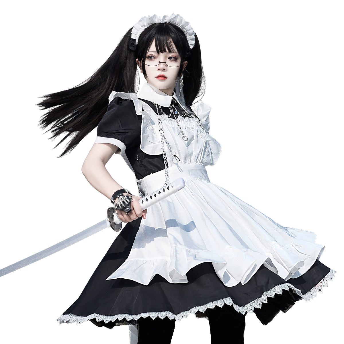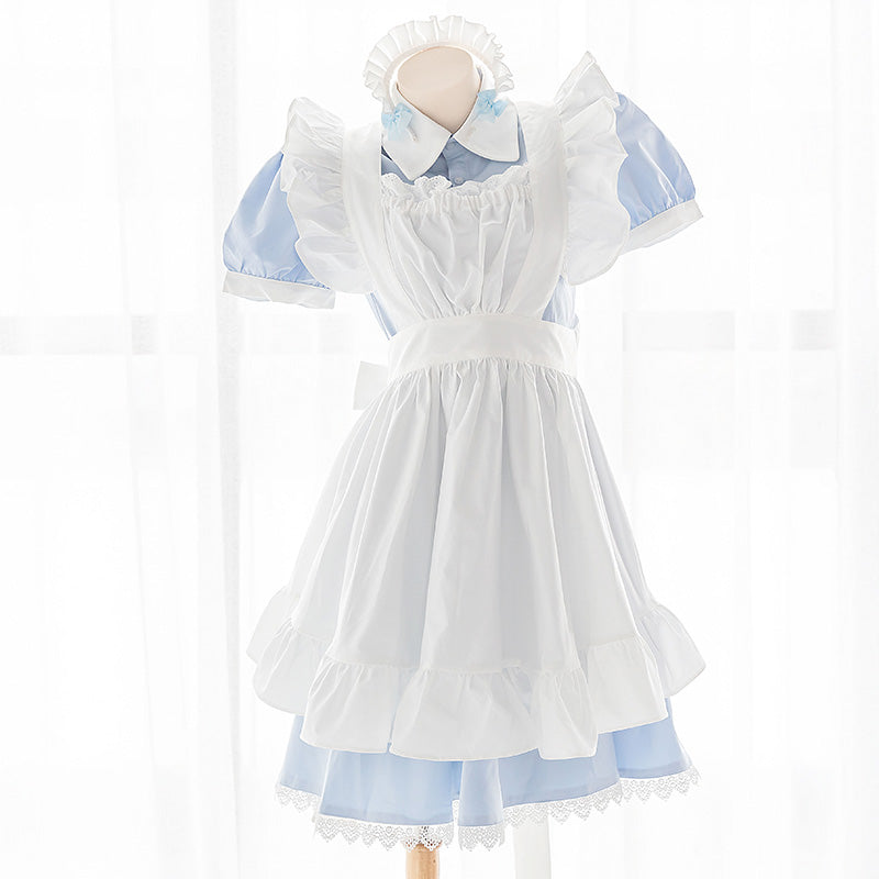 Product Name: Japanese Cosplay Maid Apron Dress Color: black, pink, blue Material: nylon cotton twill Design Features: Sweet Maid DressPackage Includes: