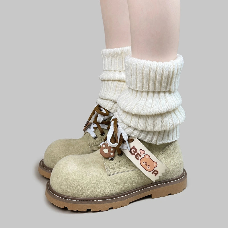 Cute Style Light Green Round Toe Platform Martin Boots
