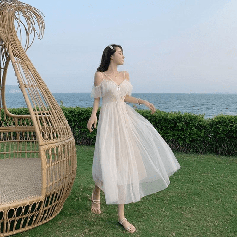 The Fairy Off Shoulder Lace Dress is the perfect dress for any special occasion. The elegant white lace fabric is figure-flattering and the spaghetti straps add a touch of femininity. The off-shoulder design is also very trendy right now, and this Kawaii dress will make you feel like a real princess.