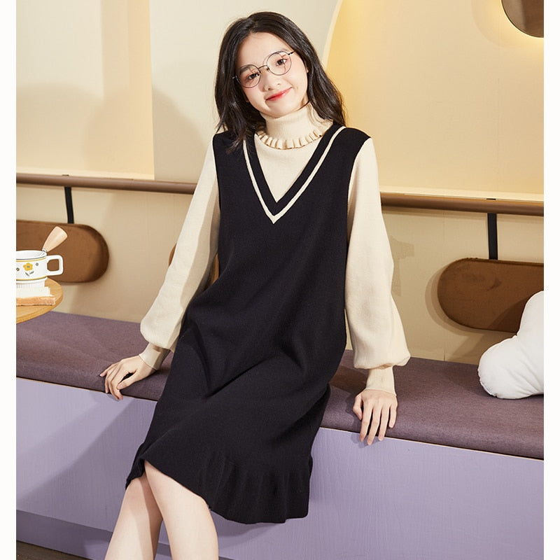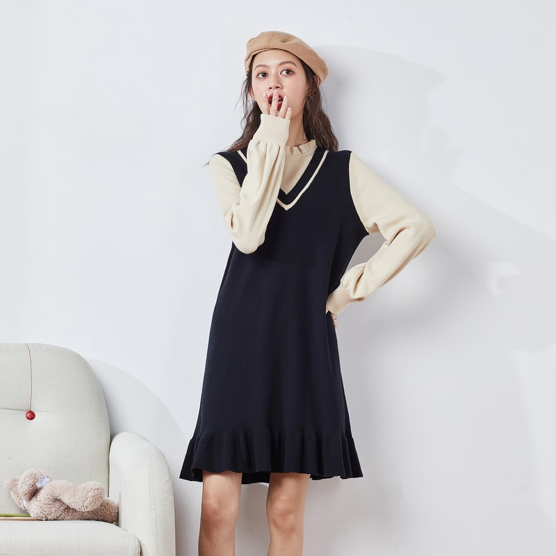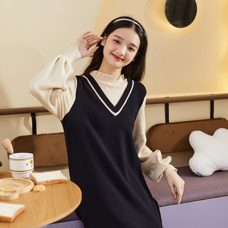 This Fashion Girl Fake Two-Piece Knitted Dress is perfect for the autumn and winter seasons! It is made with a high-quality knit material that will keep you warm and comfortable all day long. The short section of the dress is perfect for Pairing with leggings or jeans, and the overall design is very flattering. You will love the way you look and feel in this stylish and practical dress!