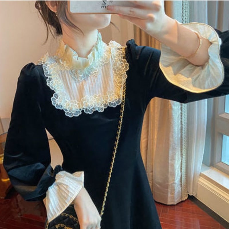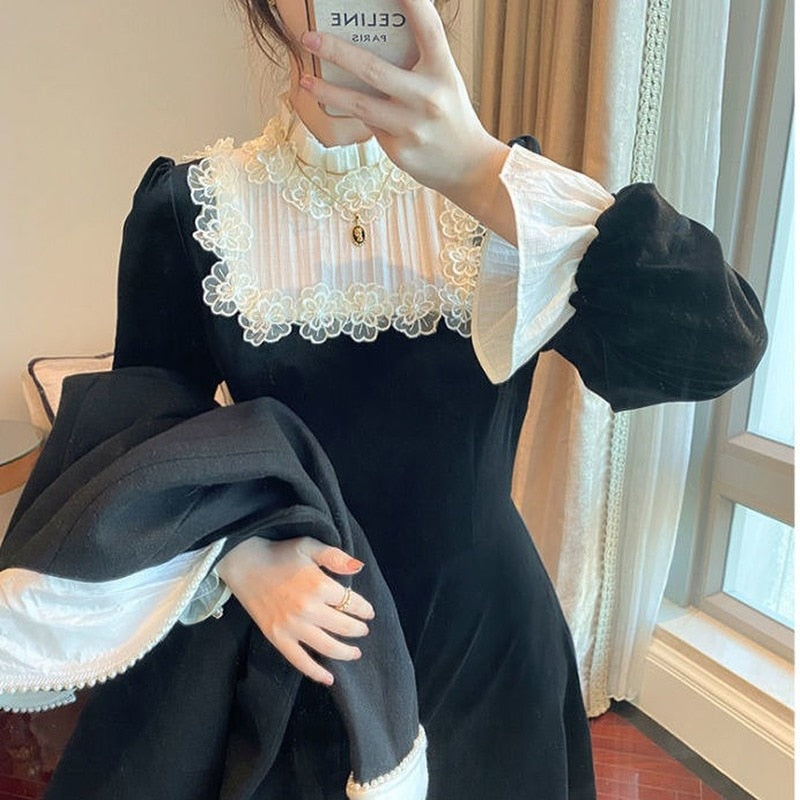 The French Retro Black Midi Dress is a luxurious mermaid-style lace dress that can be worn as an elegant evening gown or for any other special occasion. Beautifully designed with the lace covering most of the dress, this dress is covered in elegant details including an illusion neckline and delicate lace appliques scattered throughout.