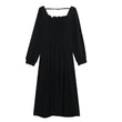 This French Vintage Black Ruched Dress is the perfect combination of elegance and style. The French Retro print gives it a unique look, while the wrap style and square collar add a touch of sophistication. The ruched sides also help to create a flattering silhouette. And with long sleeves and a comfortable fit, this dress is perfect for any special occasion.