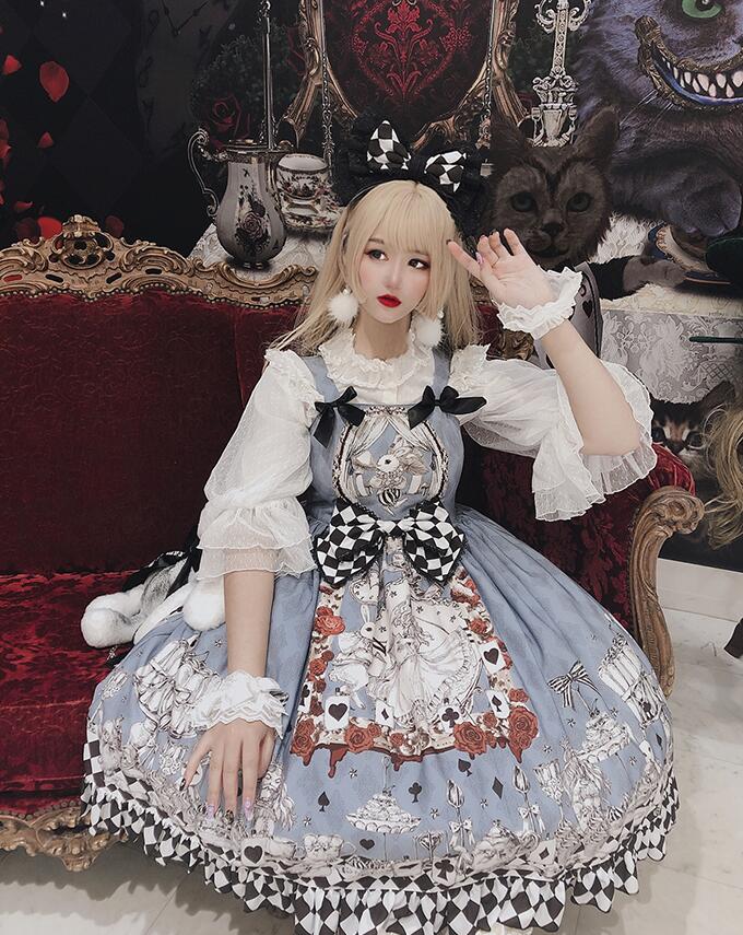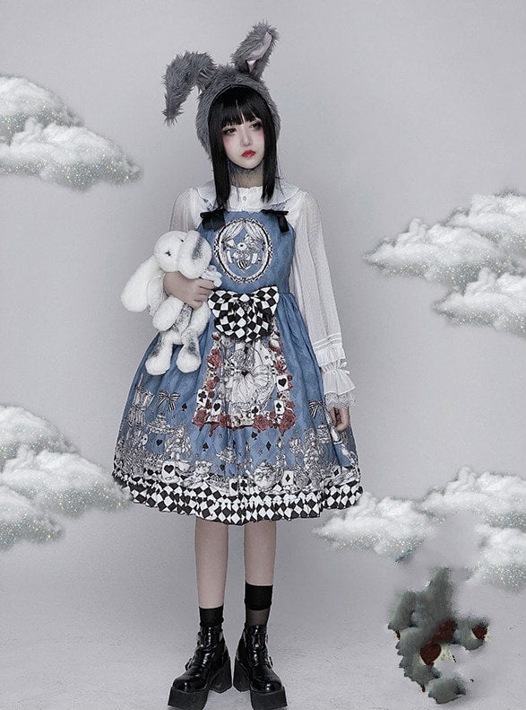 This Gothic Alice printed Lolita Suspender dress is sure to turn heads when you wear it. The blue bow printing and stitching on the chiffon fabric is eye-catching, and the fit is flattering for any body type. Plus, the suspenders add a touch of whimsy to the overall look. Whether you're attending a cosplay event or simply want to stand out from the crowd, this dress is a great choice.