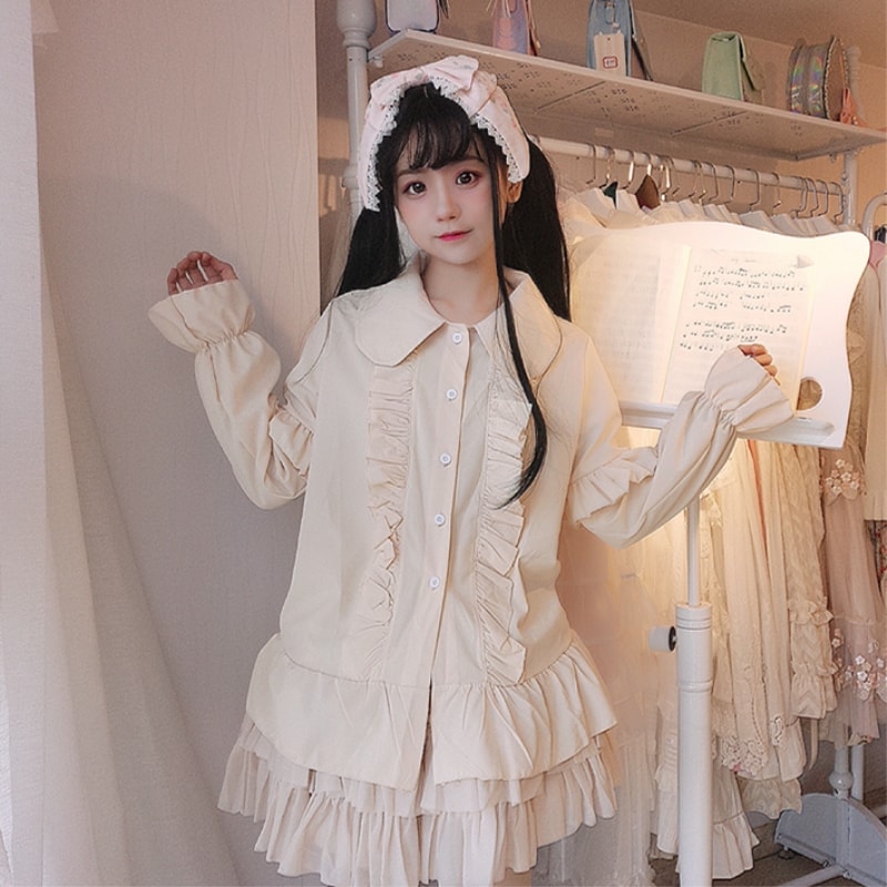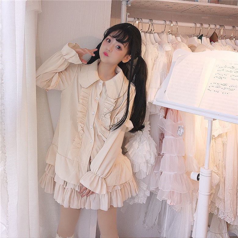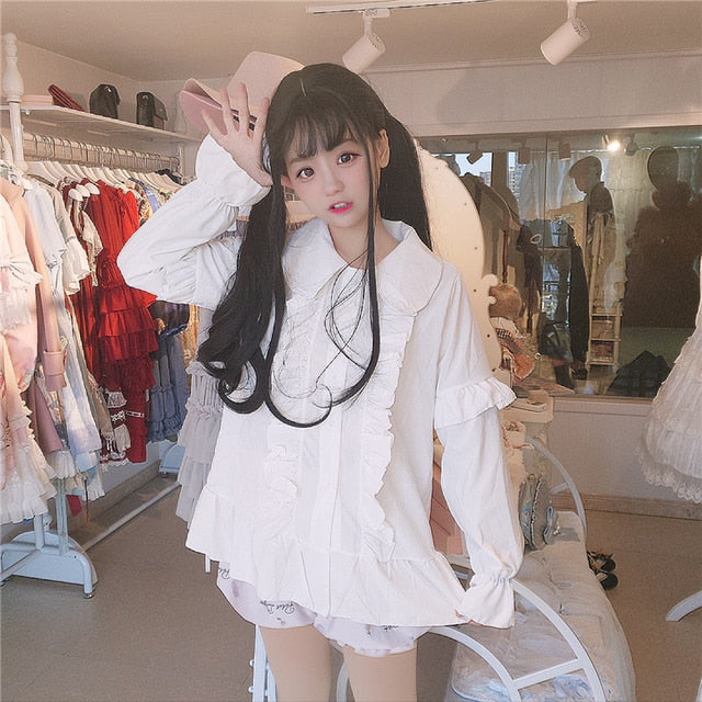 Step into a fashionable and fun world where girly collars take center stage! The Lolita-inspired Harajuku Ruffles Long Sleeved Shirt is the perfect top for tea parties, Renaissance festivals, and other dressy events. With its sweet ruffles and pretty doll collar, this shirt will make you feel like a stylish lady. Made from high-quality cotton fabric, this shirt is also comfortable to wear. So why not add a touch of Lolita fashion to your wardrobe?