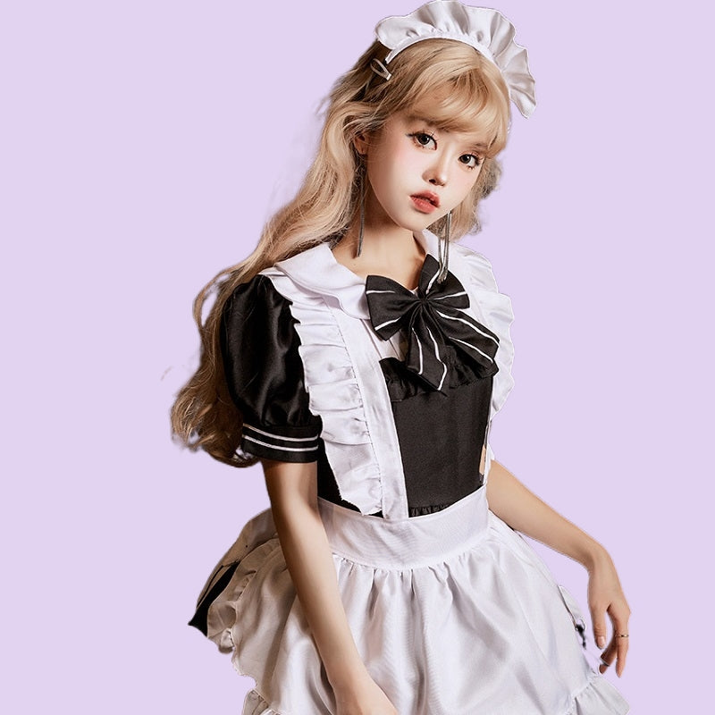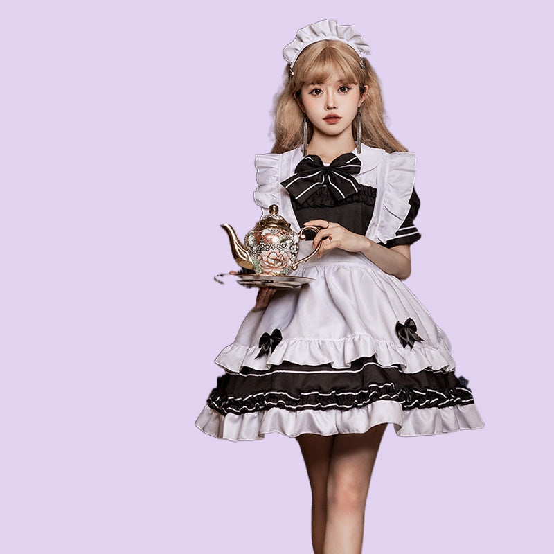 Japanese Black And White Classic Lolita Maid Dress Suit