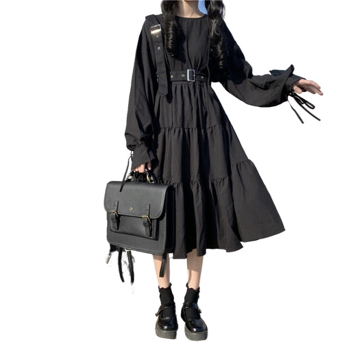 Japanese College Style High Waist Ruffled Hem A-line Dress