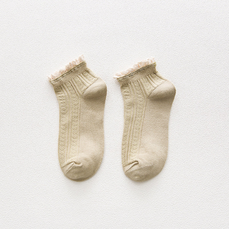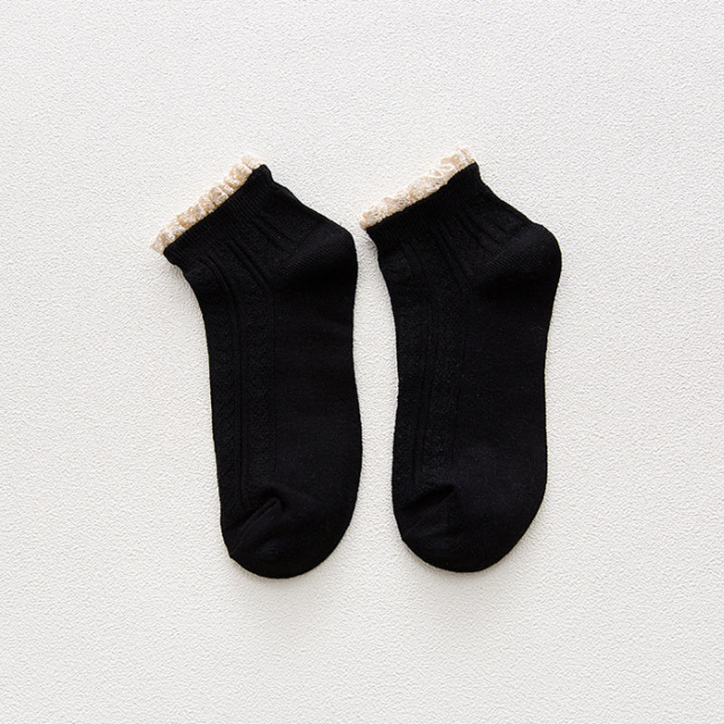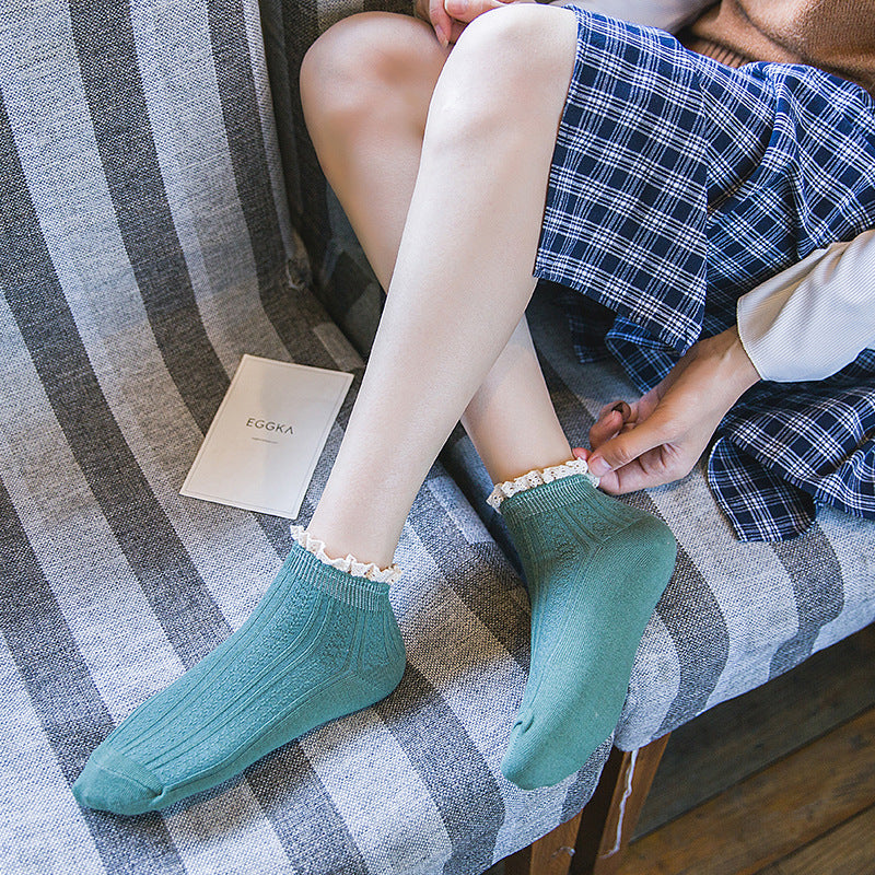 These Japanese Lolita Lace Socks are the perfect accessory to complete any sweet and feminine look. Made with a soft cotton cloth and delicate lace detailing, these socks will add a romantic flair to your outfit. Not only are they incredibly stylish, but their one-size-fits-all design makes them an extremely comfortable choice for everyday wear. The elastic band on the middle tube prevents it from slipping off your feet which makes them ideal for pairing with small leather shoes.