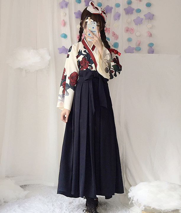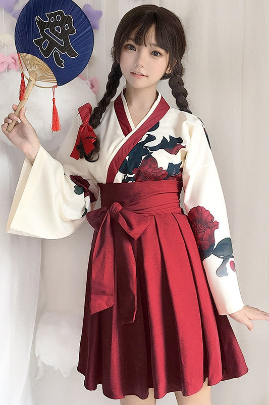Name: Improved printed kimono Size: S/M/L Color: red, black Jacket material: slub hemp, polyester fiber Skirt material: cardan emperor, polyester fiberPackage Includes: